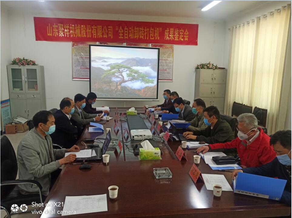 2020年4月28日,菏澤市科技局組織國內(nèi)知名專家對山東聚祥機械股份有限公司全自動卸磚打包系統(tǒng)進行了科技成果鑒定。與會專家,通過聽取項目匯報、查閱相關(guān)資料、觀看全自動卸磚打包系統(tǒng)現(xiàn)場工作視頻,大家一致認(rèn)為:山東聚祥機械股份有限公司全自動卸磚打包系統(tǒng)整體技術(shù)達到國內(nèi)領(lǐng)先水平,建議進一步提高產(chǎn)品的智能化水平,加大產(chǎn)品的推廣力度。