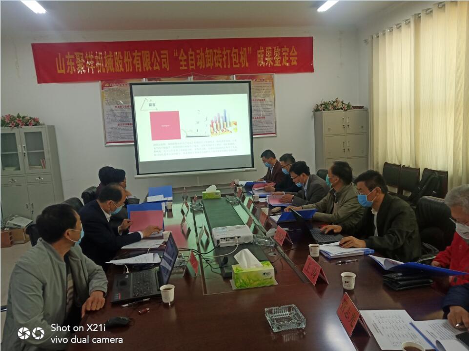 2020年4月28日,菏澤市科技局組織國內(nèi)知名專家對山東聚祥機械股份有限公司全自動卸磚打包系統(tǒng)進行了科技成果鑒定。與會專家,通過聽取項目匯報、查閱相關(guān)資料、觀看全自動卸磚打包系統(tǒng)現(xiàn)場工作視頻,大家一致認(rèn)為:山東聚祥機械股份有限公司全自動卸磚打包系統(tǒng)整體技術(shù)達到國內(nèi)領(lǐng)先水平,建議進一步提高產(chǎn)品的智能化水平,加大產(chǎn)品的推廣力度。